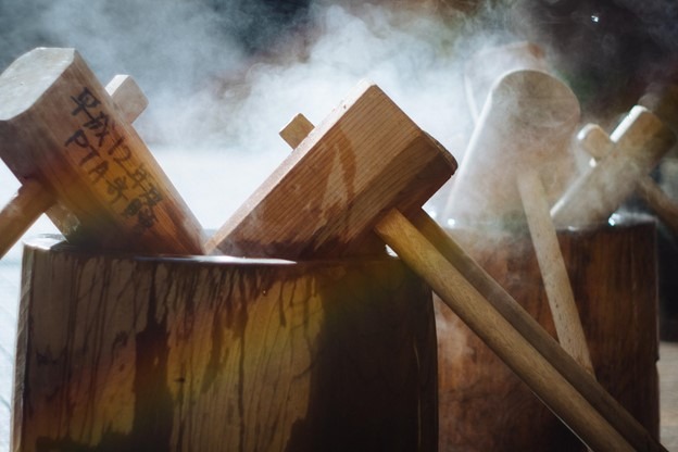 new year’s holiday, anyone can try pounding rice during the tradition called “mochitsuki”. These mochitsuki